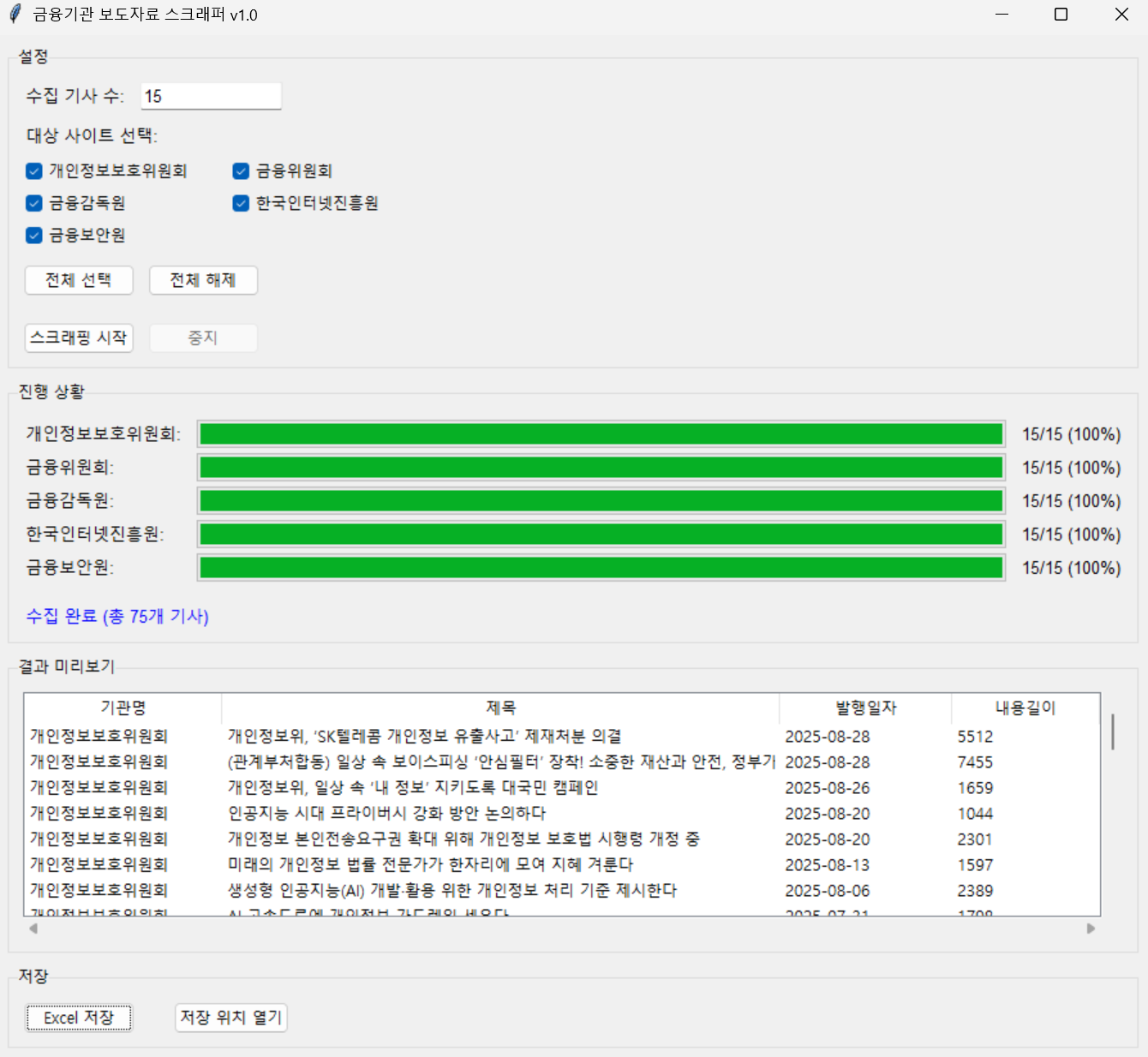 금융기관의 최신 뉴스를 스크래핑해서 엑셀에 저장해주는 자동화 프로그램